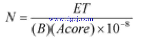 式中,B=磁通量密度(单位,高斯(G));Acore=磁心的截面积(cm2);ET=伏一秒常数(V-μs)。