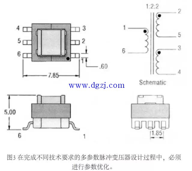 在基础门脉冲驱动变压器设计中,存在一系列设计变数,其中的每个变数由其专项应用决定。它们的一些通用简图及其相应的转换关系见图1所示。
