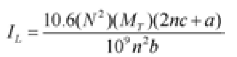 式中,I L=两个绕组之间的漏电感值(单位,亨);N=绕组的匝数;MT=整体磁心平均周长(单位,吋);n=绕组之间介质(绝缘)层的数量;c=介质(绝缘)层的厚度(单位,吋);b=绕组的横向尺寸(单位,吋)。