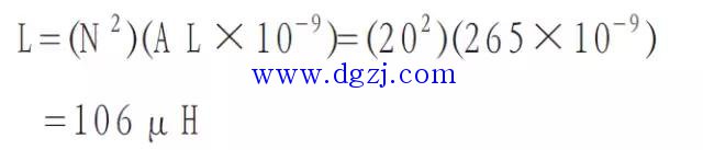 在磁心的A L值存在着±25%公差时,最小的电感值是75 μ H, 这个电感值是相对较小的, 但它已能够满足设计参数要求。最小的电感值必须满足50 μH。匝数的增加将增大电感值,这时需要折衷处理电容值。所以,2 0匝的规定是必须保证的。