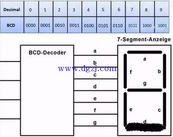 十进制每一位分解解码到二进制码的4位一组十个数,其 BCD 码向十进制解码后只有 0~9,而无需再考虑十进制的进位问题,一般用于人眼习惯的 7 段数码显示管。