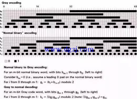 格雷码是二进制编码的一种,其特征是每一次递增(或递减)一个字变化,所有位数上只有其中一位发生了改变(0 与 1 的变化),并且数据终点循环到起点同样遵循这个原则,这样在一个字的变化过程中,只有一位数发生跳变,数“能”变化量最小,出错概率最低。特别适合于绝对值编码器的多码道同步读取或多位数同步输出(并行输出)中,也适合在通讯传输中。