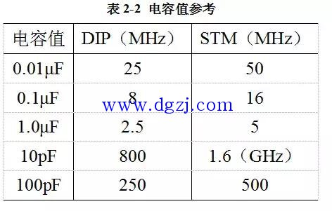 而对于到底用多大容值的电容,表2-2可作为一个参考值。