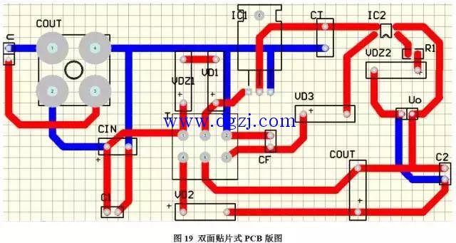所以,在这修改之后的双面直插式PCB版图如图17所示。
