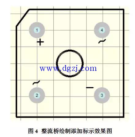 根据查阅的信息可以整流桥的4个引脚间的尺寸均为10mm,这样对于绘制就显得异常的方便。