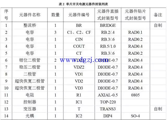 用相同的方法对变压器进行绘制,最终通过整理可以得到图1-3单片开关电源的元器件封装列表。如表2所示。