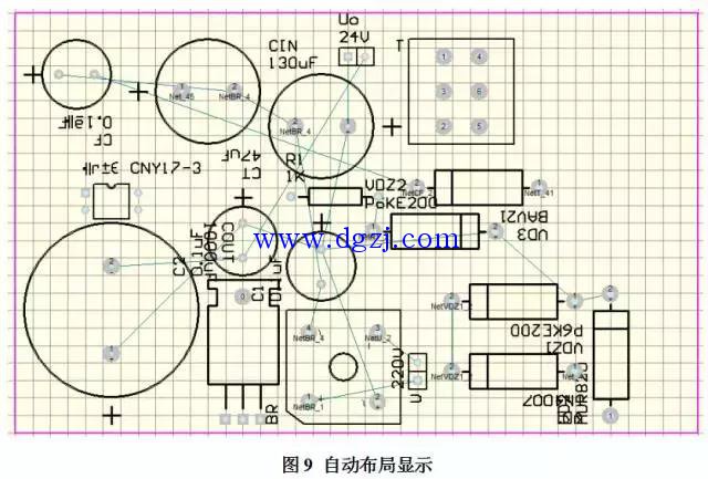 本单片开关电源电路图自动布局后如图9所示。