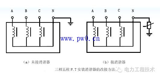 (5) 采用质量较好、铁芯不易饱和的电压互感器,或改变电压互感器的接线方式。