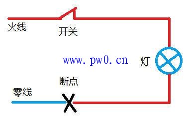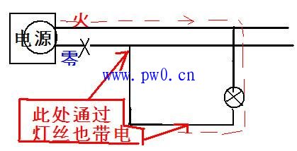 ☟如下图红色部分均与火线同电位(其实灯泡也是带电的,但不会亮)