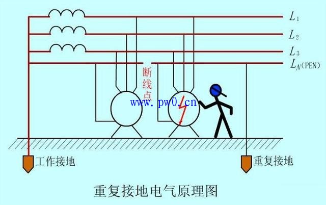 在三相四线制中性点直接接地的线路中,正常情况下零线是不带电的,这是因为正常时零线上任一点和大地都是同电位的缘故。但是在零线断线后,负荷侧的中性点会产生位移电压,此时若人碰到断落的零线,电流将由相线—负载—零线—人体—零点—相线形成通路,这是极为危险的。