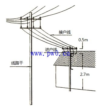 进户点不能低于2.7米,若过低要加装进户杆。