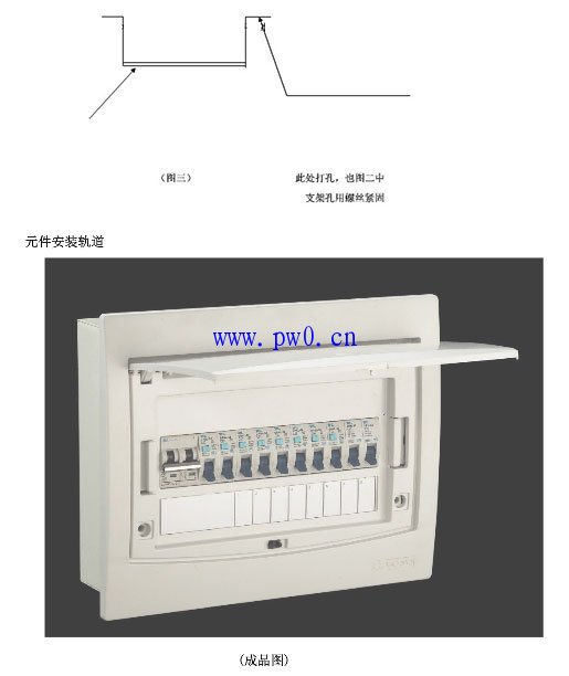 为了使开关更牢靠的安装在箱体内,我们用标准尺寸的轨道做了一个支架,如图三,示意图