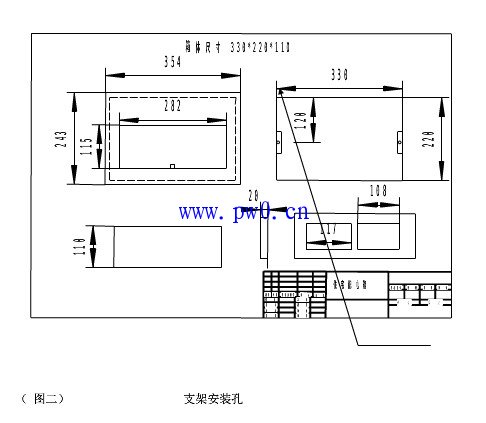 这样箱子的尺寸就出来了,为:354,宽:*220,高*110(厚)如图(二)