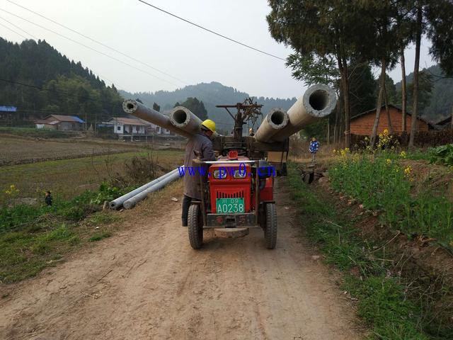 拖拉机将电杆拉至配变台区,方便组立电杆