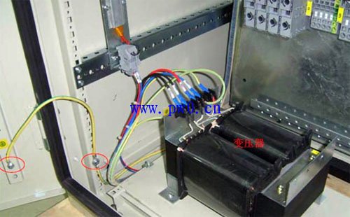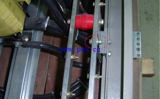 柜内任意两个金属部件通过螺钉连接时如有绝缘层均应采用相应规格的接地垫圈并注意将垫圈齿面接触零部件表面(红圈处),或者刮去绝缘层后连接地线。