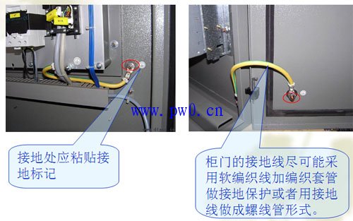 门上的接地处(红圈处)要加“抓垫”,防止因为油漆的问题而接触不好,而且连接线尽量短。