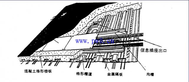 格形楼板和沟槽结合采用时敷设缆线支撑保护要求如图