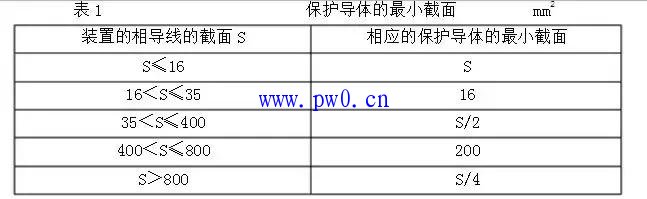 4、低压配电装置的接地母线(PE)应符合表1的要求。