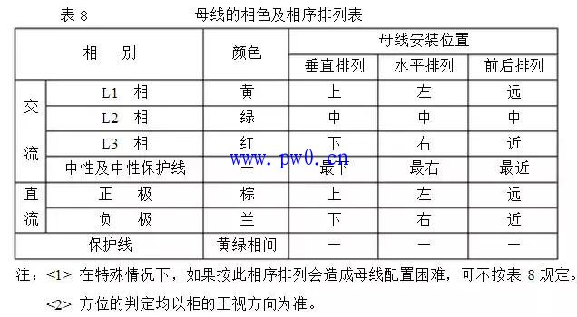 2、母线的相色及相序排列应符合表8规定