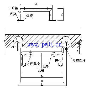 (5)桥架支撑点,如立柱、托臂或非标准支、构架的间距、安装方式、型号规格、标高,可同意在平面上列表说明,也可分段标出用不同的剖面图、单线图或大样图表示。
