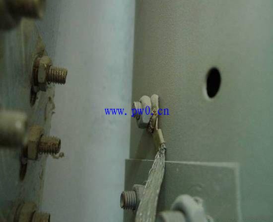 注意垫片及顺序及螺栓外露的长度及接地标识、螺栓的位置;不能用连接螺栓固定跨接线螺栓的个数; 压接位置。