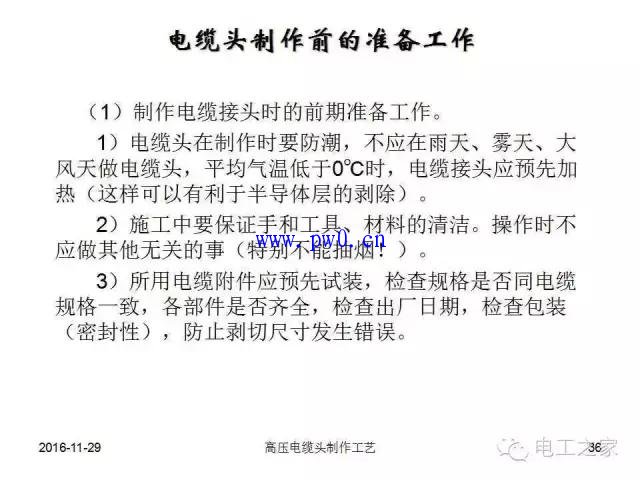 1)雨雪、雾等湿气太重的天气不适合做高压电 缆接头。