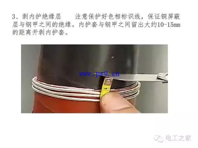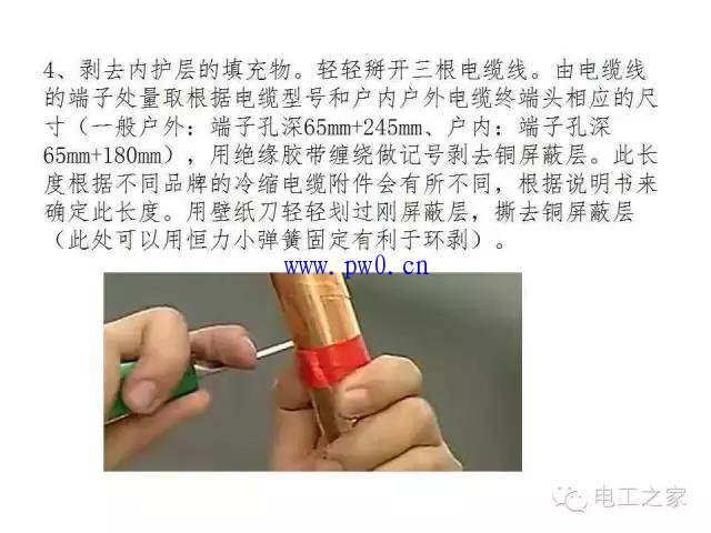 6)剥离内、外护套,半导体层和铜屏蔽层时不按规定尺寸和要求进行。