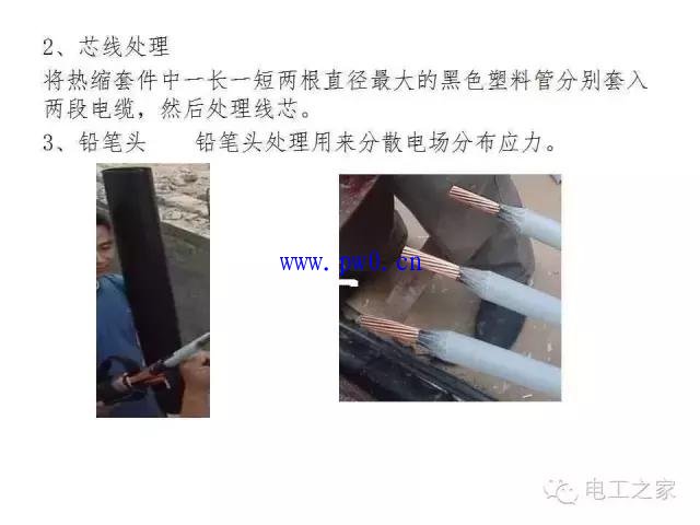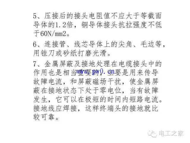 1)制作电缆头(端头和接头)时,电缆头导线终端不作铅笔头。