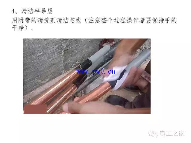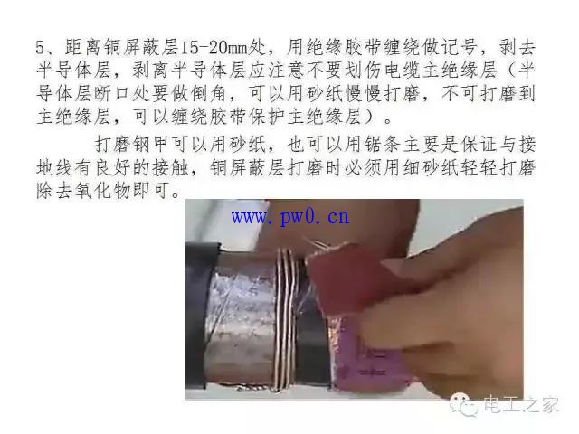 1)接地铠甲不打磨,铜屏蔽层不去除氧化物。