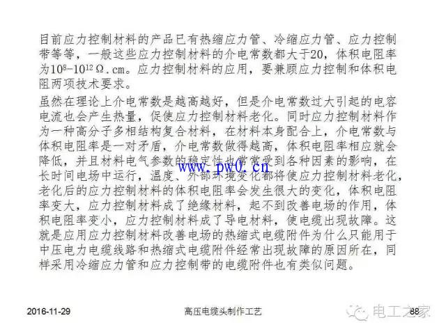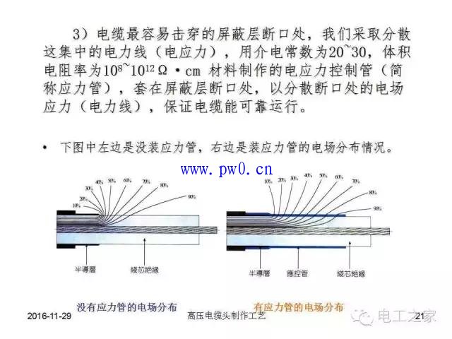 a、要保证应力管的电性参数必须达到上述标准规定值方能可靠工作。 另外要注意用硅脂填充电缆绝缘半导电层断口出的气隙以排除气体,达到减小局部放电的目的。