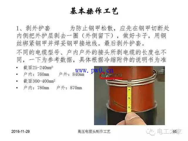 1、35kV与10kV高压电缆接头耐压等级不一样,选取的材质制作要求和做法也有一定区别,但热缩和冷缩工艺流程大体相同,35kV比10kV高压电缆接头要求更加严格,本文以下叙述以35kV电缆接头为例,参照10kV视频。