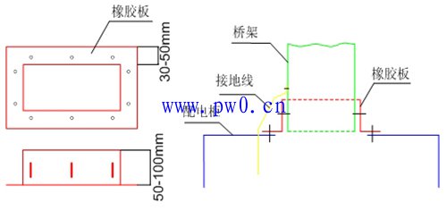 二、配电柜安装完成后,安装柜上方的的桥架。配电柜进出电缆开孔位置由供货方按尺寸预留。电缆敷设完成后封闭。桥架与柜内接地母排用专用接地线可靠接地。桥架与配电箱(柜)连接处采用橡胶板连接,以保护导线和电缆,桥架与配电柜连接见图。