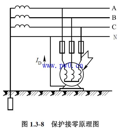 当设备正常工作时,外露部分不带电,人体触及外壳相当于触及零线,无危险,如图1 .3-8 所示。