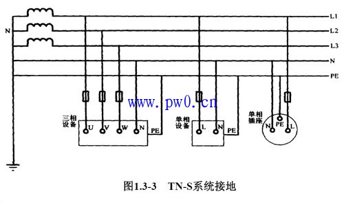 TN系统即电源中性点直接接地、设备外壳等可导电部分与电源中性点有直接电气连接的系统,它有三种形式,分述如下。
