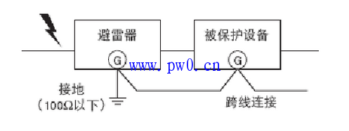 这里应着重指出的是:避雷器的地线和地或者被保护设备的外壳之间要用跨接线连接起来。
