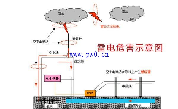 (2)感应雷是指雷云对地放电过程中,放电通道周围空间的电磁场发生急剧变化,在附近导体上产生感应过电压。对于低压配电系统,由于绝缘水平较低由感应雷过电压引起的故障率超过90%。