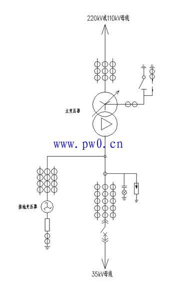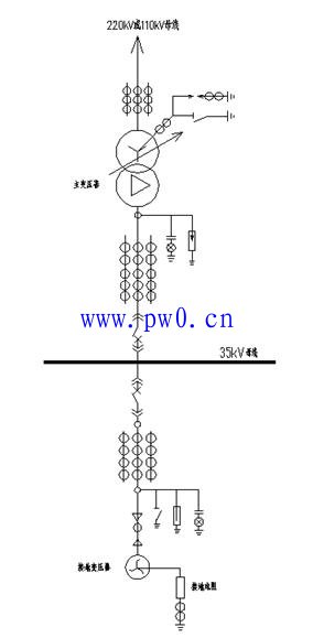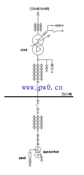 一种是将主变压器35kV侧直接选为Y型接线,将中性点接地电阻直接接于主变压器35kV中性点侧。
