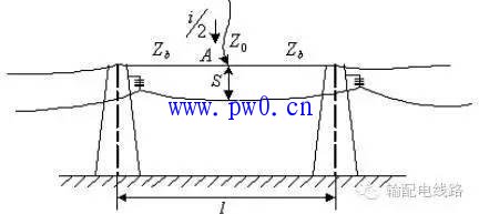 如下图所示,雷击地线档距中央时,虽然也会在雷击点产生很高的过电压,但由于地线的半径较小,会在地线上产生强烈的电晕;又由于雷击点离杆塔较远,当过电压波传播到杆塔时,已不足以使绝缘子串击穿,因此通常只需考虑雷击点地线对导线的反击问题。
