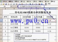 在用Excel中,计算功率因数公式如下图: