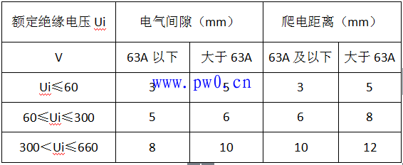 2.爬电距离值不能小于电气间隙值。