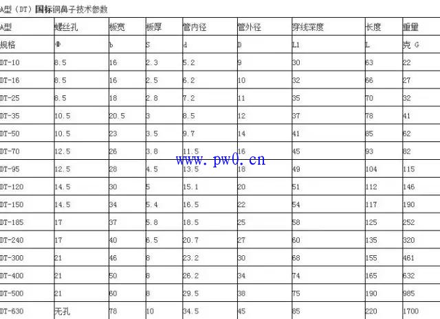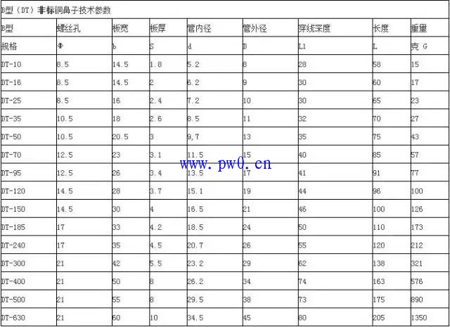 三、DT铜鼻子技术参数(国标与非标差距很大)