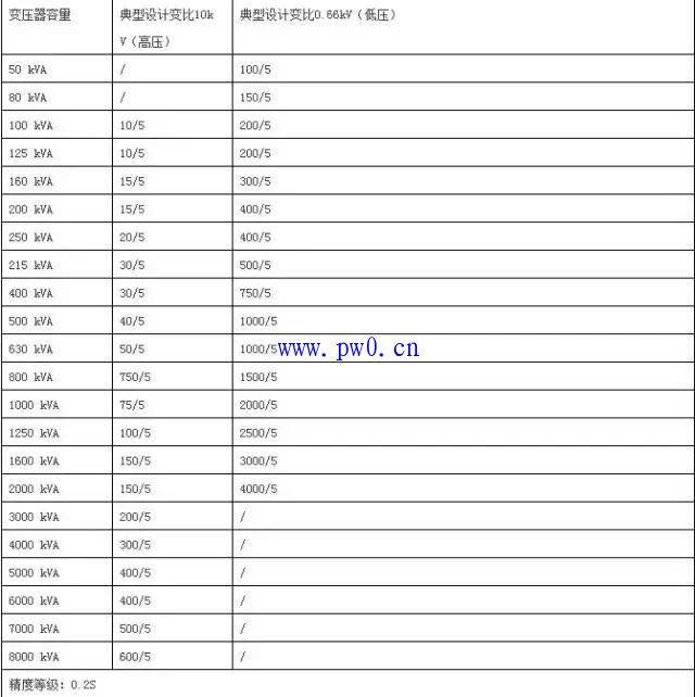 变压器容量与电流互感器配置图解