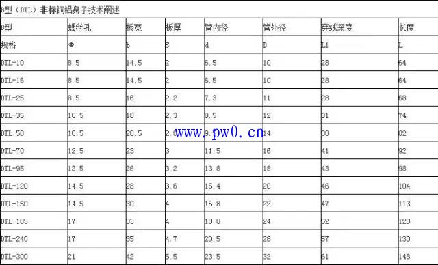 四、DTL铜铝鼻子技术参数(国标与非标差距很大)