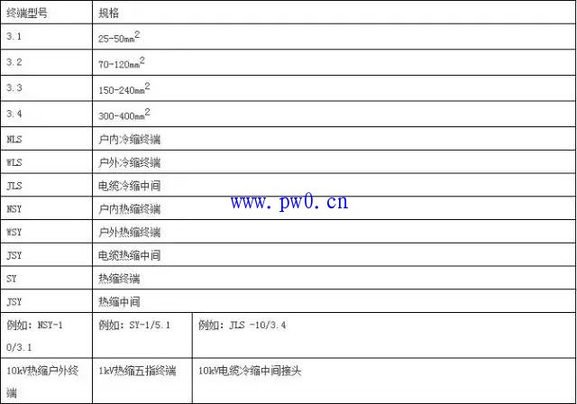 二、电缆附件型号对应电缆规格