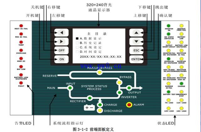 当系统由BYPASS 电源提供输出时,此LED 灯会亮起,表示此时系统输出并不是由逆变器提供,