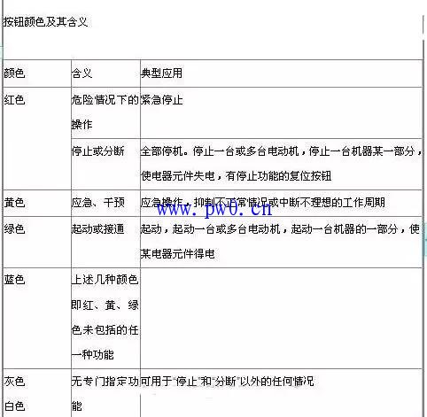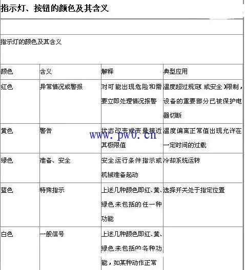 成套配电柜指示灯及按钮颜色图解