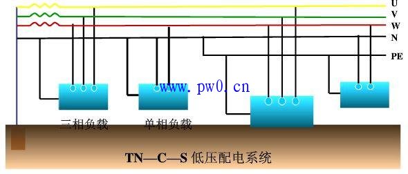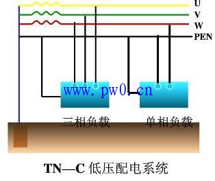 这种配电系统的零线N和保护线PE为同一根线,成为PEN线。
