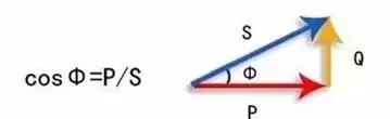 S是视在功率,P是有功功率,Q是无功功率