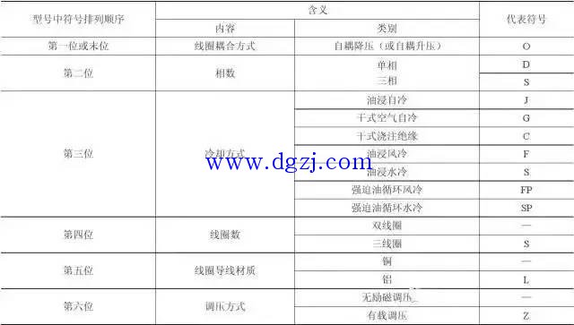 产品名称:变压器的产品名称通常用字母来表示,表示产品的线圈耦合方式、相数、冷却方式、线圈数、线圈导线材质、调压方式以及特殊用途等内容,见表1-1所列。
