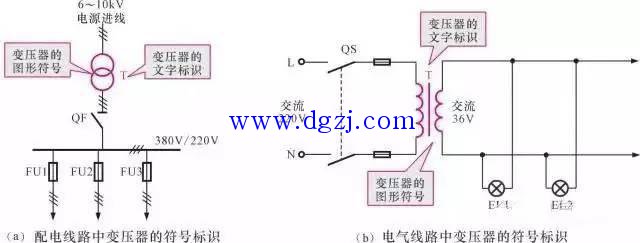 有些三相变压器在图形符号中还可以体现出变压器的连接方式,如图1-15所示。